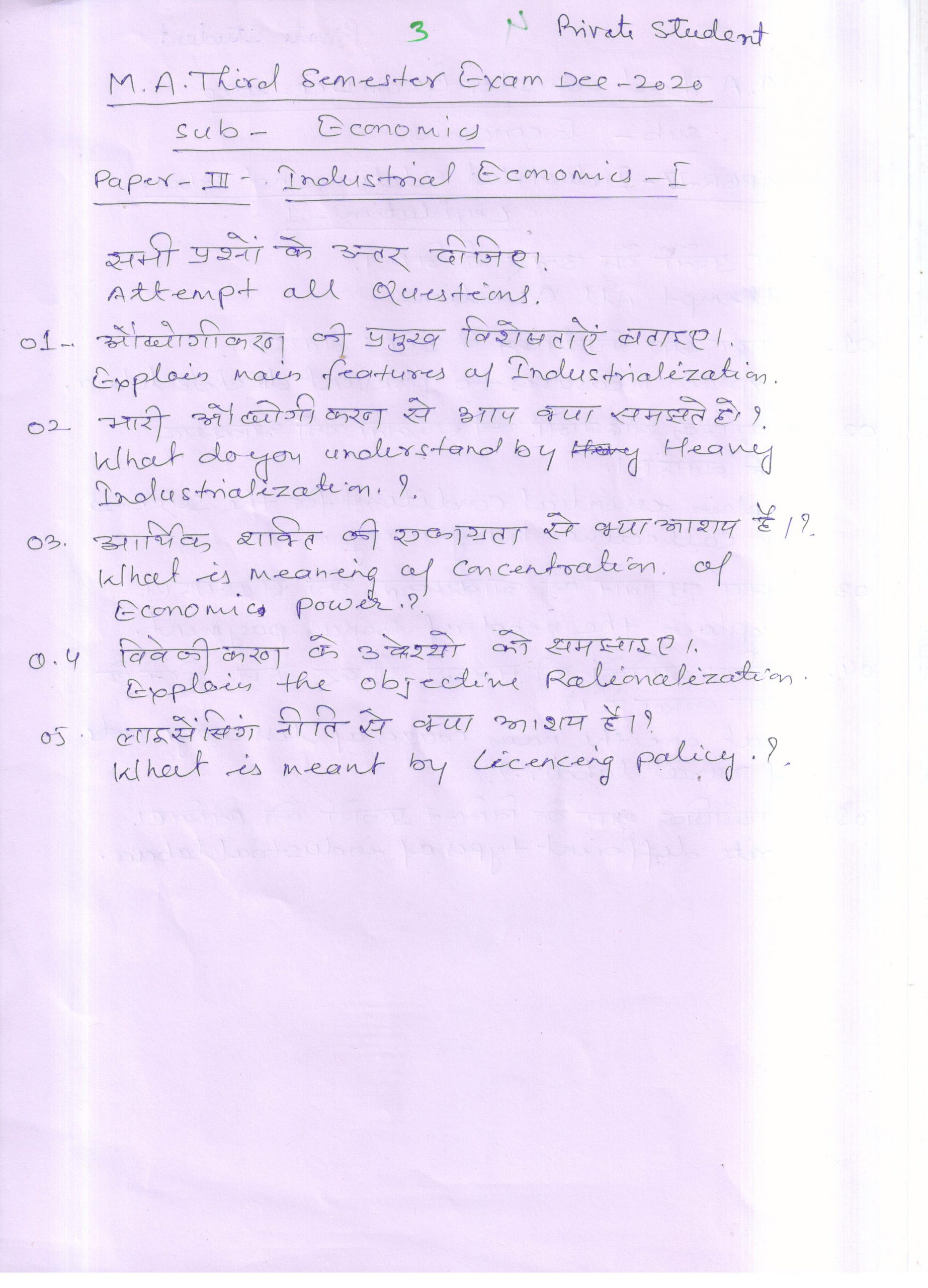 M.A. Economics 3rd Sem Exam Dec-2020 Private Students
