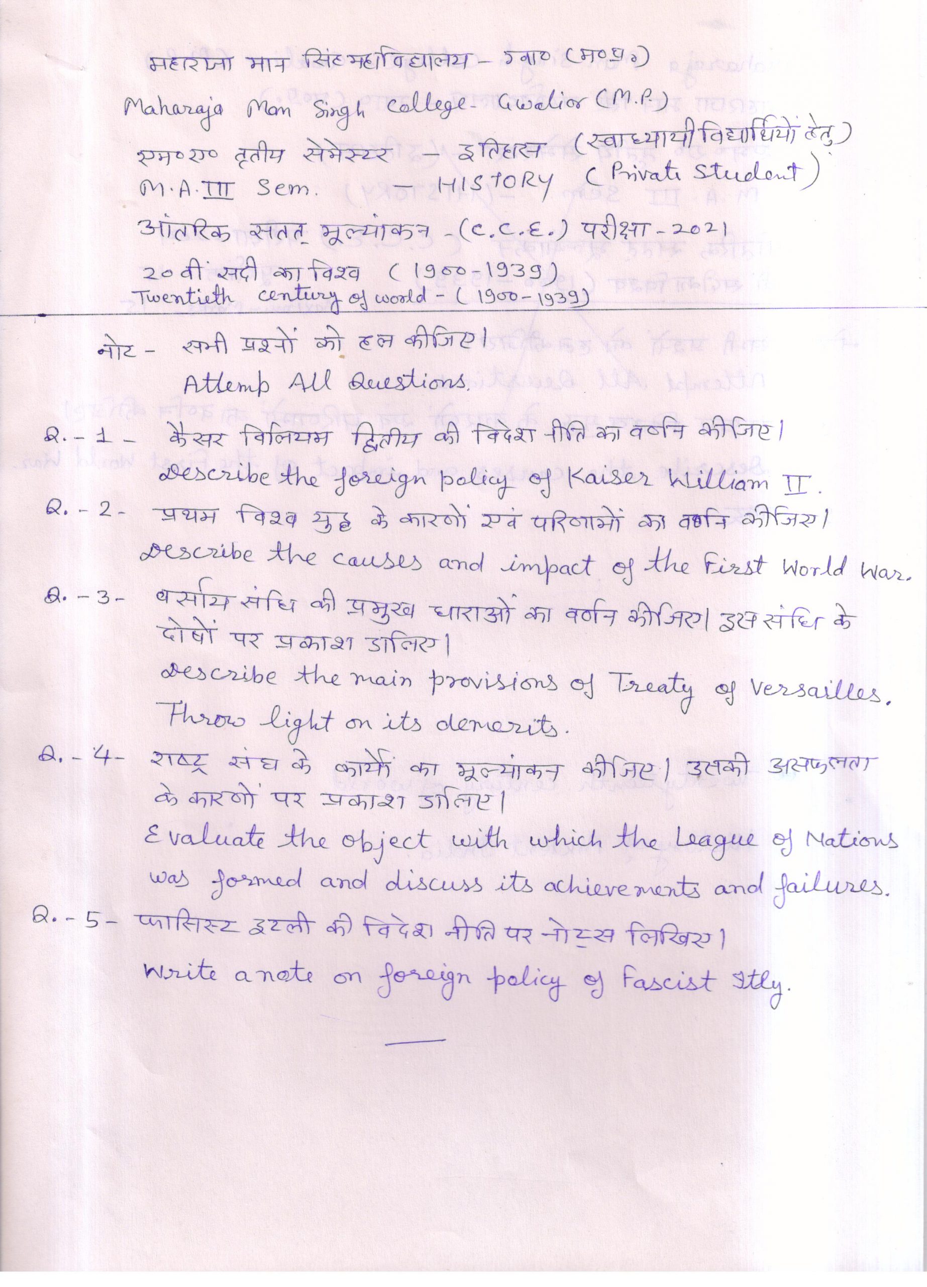 M.A. History 3rd Sem Exam Dec-2020 Private Students